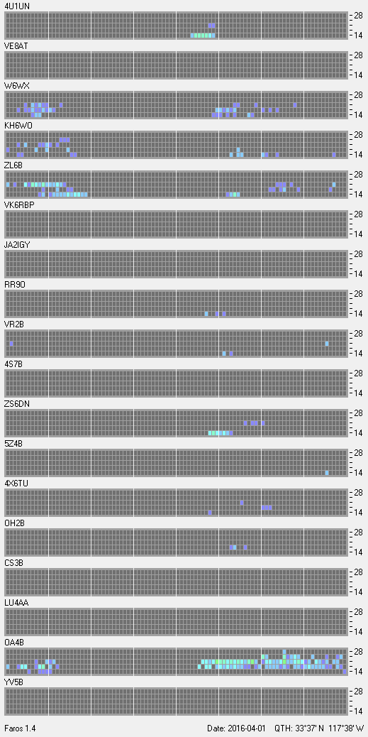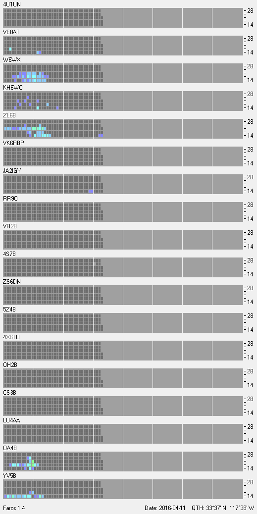 | NOTE: As of April 1, following beacons are down:VK6RBP (Australia), CS3B(Maderia) | |||||||||||||||||||||||||||||||||||||||||||||||||