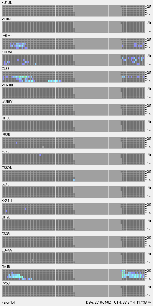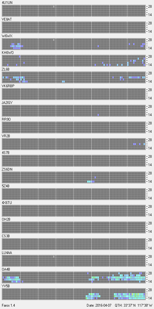 Location: Mission Viejo, CA U.S.A. (33° 37' N, 117° 38' W -- DM13) OS: Windows 7 (64-bit) App: FAROS 1.4 |