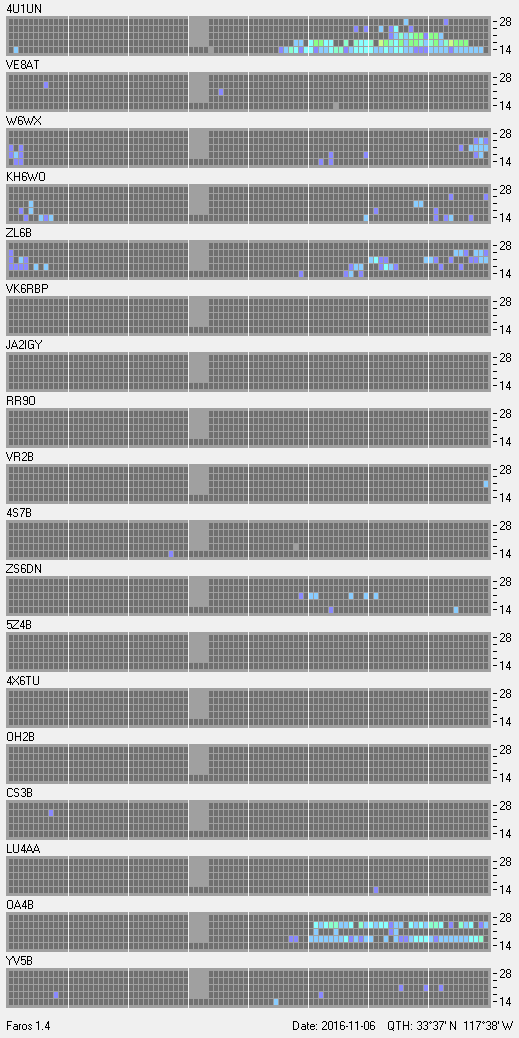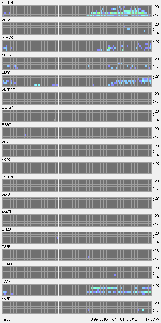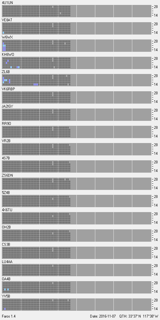 NOTE: As of October 1, following beacons are down or has not been heard: I was out of town on business 11/1 ~ 11/3. November chart set up was late. Sorry. |