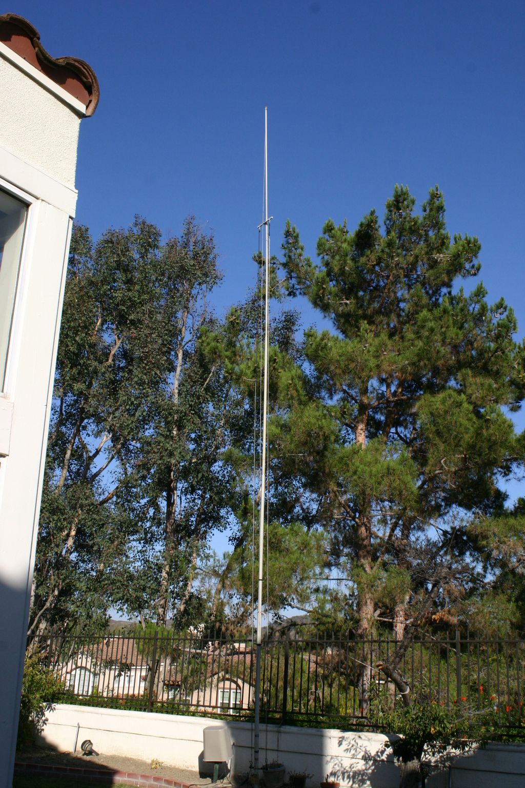 I am calling this custom vertical a Mission Viejo Special, commemorating deed-restricting city USA. It is not-so-visible but of good performance (wide bandwidth, good radiation efficiency, low radiation angle), very suitable antenna for the area.