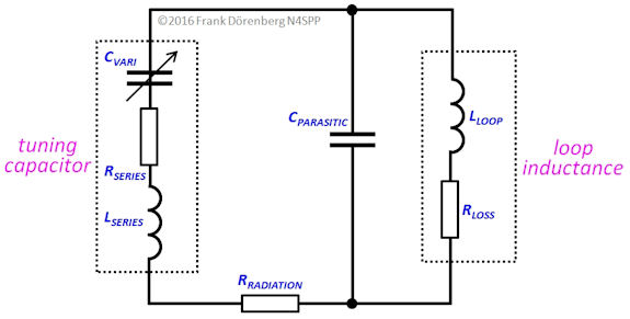 Look at the diagram above. A loop antenna works like an LC resonant circuit. The loop is the inductive element. You insert a tuning capacitor at the top (left side of the diagram) to tune. Just like you tune an old-fashioned radio. This is so because the entire structure of the magnetic loop is so small compared to the wavelength of the signal you are dealing with, unlike dipole and/or other e-field type antennas. Simple enough, right?