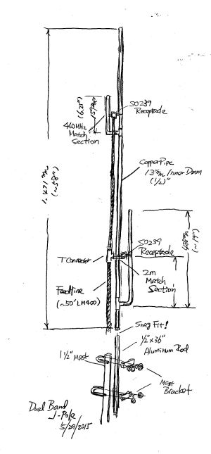 There is nothing novel or unique about a J-Pole antenna. But after a minor emergency here at W6SI, I had to lift my lazy buns to raise a new V/UHF antenna. This is a practical talk about that experience, and it would be great if any of this helps someone doing something similar. For V/UHF communication, I have been using a discone antenna that I picked up at a junk store long time ago. It was mounted on a chimney of the house. It had a very broad bandwidth, but I never knew how well it is radiating. I was thinking about replacing that antenna for some time, if just for trying out something different. Then I dug out from the deep corner of my garage, a copper tube J-pole antenna. Why not try that, see if it can work better to compensate for the loss of transmission power. |