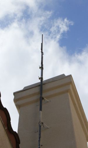 One of the debates I hear often about J-pole, copper pipe versions specifically, is whether it is necessary to ground its base, or should be insulated from ground. I hear both arguments, but without much theoretical substantiation. This mounting of mine, is not grounded. The antenna is attached to a 32mm (1 ¼”) steel mast, un-insulated. The mast is attached to the chimney (stucco – non-conductive) with a pair of wall mounts. Feed point is about 25’ above ground. Prior to taking it up there, I ran some experiments by mounting it on a tripod in the backyard with or without grounding wire attached. It really made no difference. Grounded or not, the J-Pole worked just fine, with no significant change in SWR. I don’t have a definitive explanation for this (yet). Besides, you can’t “RF-ground” the antenna when it’s up there. The grounding wire will be much longer than 2m wave length. It does make sense as a DC ground, to avoid lighting hit. But you can do the same by inserting a lightning arrestor in the feed line. I have not tried to attach radials at the base (for creating an RF ground plane), but my attitude is, “why bother”? One mystery still remains. Why is the SWR higher for this antenna? Similar sized J-pole are reported to have a low SWR (like near 1.0) with a good bandwidth to cover the entire 2m band. Mine does seem to be stable over fairly broad range of frequency too, but the impedance is a little low at the resonance. I am thinking that because there are two independent match sections, the two impedances are added in parallel, making the composite impedance lower. It is not clear why the builder of the antenna put two match sections. It should have worked fine with just 2m section. One last word. The gain of the antenna. There is no theoretical “gain” per se for either discone or J-pole, compared to dipole (if anyone is using dipole for 2meter). In fact, the concept of gain does not apply to mostly omni-directional antenna. But in practice, different types of omni antenna work differently, to their own merit. So let’s not say that “this antenna has gain over that antenna”, the location, height, surroundings, surrounding ground characteristics etc., can affect more than just the shape of an antenna. I am NOT saying J-pole always works better than discone. Only definitive way to know the antenna performance is to experiment with it. |